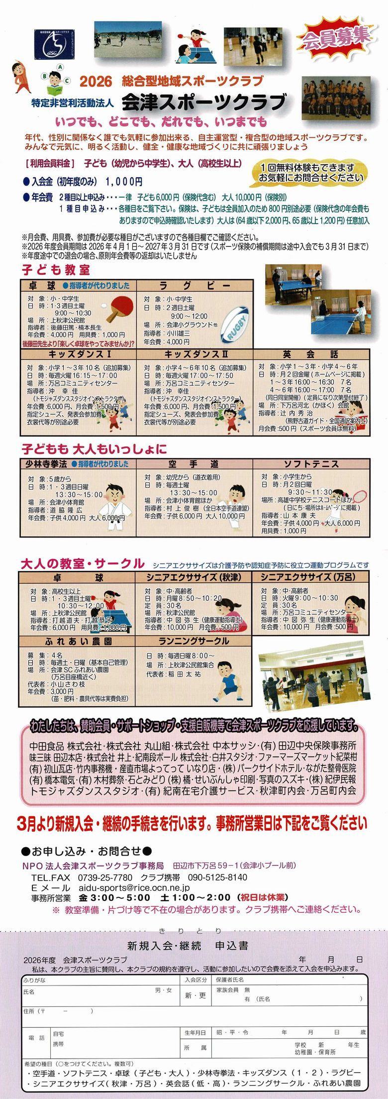 この法人は、会津小学校区を拠点としたスポーツ活動の振興を図り、総合型地域スポーツクラブを核とした地域住民の自立的な社会活動を促進し、生涯にわたる豊かなスポーツライフの実現を図るとともに、明るく元気のある町づくりに寄与することを活動目的としています。