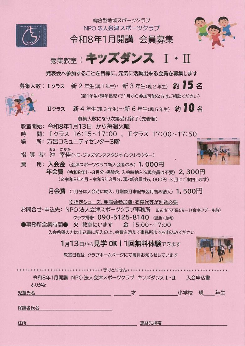 詳細等は、各教室の先生又は事務局にお問合せ下さい。